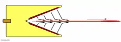 Detonatorul (capsa electrică sau pirotehnică) se află fixată la partea superioară a încărcăturii explozive, făcând un unghi de 90° cu suprafața obiectului. În acest mod, efectul produs de explozie depășește cu mult pe cel produs de o cantitate egală de exploziv plasată în mod convențional.
