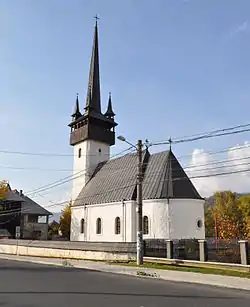 Turnul înalt de peste 38 m domină așezarea, iar în jurul coifului îl împodobesc cele 4 turnulețe în stil maramureșan.