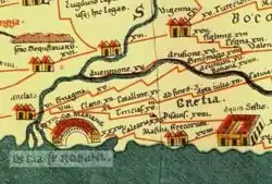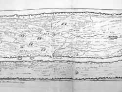 Tabula Peutingeriana este o hartă care a fost creată în 1265 de către un călugăr din Colmar, Franța. Aceasta se bazează pe o hartă din secolul al IV-lea sau al V-lea, care a fost la rândul ei a avut drept sursă o hartă pregătită de către Agrippa în timpul împăratului Augustus (27 î.Hr. - 14 d.Hr.)[3]. Harta a fost descoperită în 1494 de către Conrad Celtis, la Worms[4], în Germania, și predată lui Konrad Peutinger din Augsburg (Germania), care a intenționat să o publice, însă moartea l-a împiedicat să-și ducă la îndeplinire dorința. A publicat-o Abraham Ortelius, 1598 la Anvers.