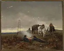 Czaty kozackie, pictură în ulei de Tadeusz Rybkowski