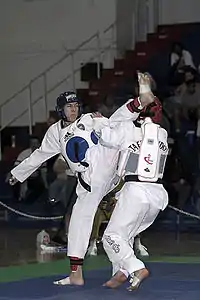 Taekwondo[1] (în coreeană 태권도 (hangul) / 跆拳道 (hanja) [tʰɛk͈wʌndo]), transcris și ca taekwando[2] Taekwon-Do sau Tae Kwon Do) este o artă marțială coreeană, caracterizată în special prin lovituri înalte cu piciorul și lovituri cu pumnul. Taekwondo este unul dintre sporturile naționale coreene, practicat de peste 2000 mii de ani, reprezentând unul dintre cele mai vechi arte marțiale.[3] Recent intrat în categoria sporturilor olimpice, practicarea acestui sport în întreaga lume este structurată și administrată de către World Taekwondo[4] (WT [în română, Federația Mondială de Taekwondo]). Numele federației a fost modificat în acest fel în 2017, deoarece prescurtarea vechii sale denumiri World Taekwondo Federation (W.T.F.) inducea spre corelarea numelui său cu celebra prescurtare a unei injurii din limba engleză. În România practicarea acestui sport se realizează sub coordonarea Federației Române de Taekwondo WT[5], la conducerea căreia se află Constantin Apostol, maestru internațional 7 DAN.