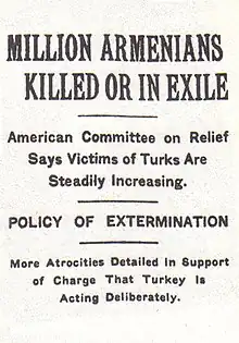 - „Exiled Armenians starve in the desert; Turks drive them like slaves, American committee hears ;- Treatment raises death rate”. New York Times. . Arhivat din originalul de la .