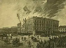 La 18 februarie 1883, după o repetiție a piesei Henric al IV-lea, clădirea a fost distrusă de un incendiu. Reconstrucția a fost încredințată arhitectului arădean Andor Halmay. Teatrul reînnoit s-a redeschis în octombrie 1885 cu prezentarea unei piese de Csíki Gergely.