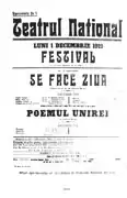 - Spectacolele Poemul Unirii de Zaharia Bârsan și Răzvan și Vidra de B.P. Hasdeu ale acestei prime reprezentații au fost puse în scenă de artiștii Teatrului Național din București.