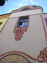 Clădirea a fost edificată în stilul Secession vienez. A fost cumpărată cu suma de 17.000 de lei, iar în 1911 a fost dată în folosință ca teatru orășenesc, numindu-se inițial „Ansamblul de Cântice și Dansuri Populare”.