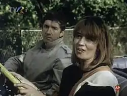 ![]() Captură de ecran din film. Anca (Carmen Galin), la volanul Fordului model 1928, alături de Radu (Mircea Diaconu). | |
