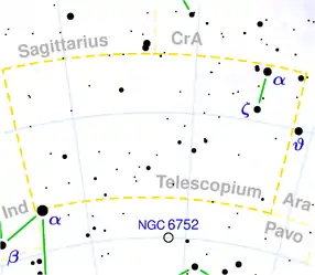 ![]() Harta constelației Telescopul (click pentru mărire) | |