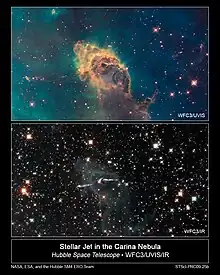 Telescopul spațial James Webb (JWST) este un telescop spațial dezvoltat de NASA, Agenția Spațială Europeană (ESA) și Agenția Spațială din Canada (CSA). Este destinat să succcedă telescopului spațial Hubble ca misiune emblematică a NASA în astrofizică.[6][7] JWST a fost lansat la 25 decembrie 2021 pe o rachetă Ariane 5 VA256. Este conceput să ofere o rezoluție și o sensibilitate îmbunătățite în infraroșu față de Hubble și va permite o gamă largă de investigații în domeniile astronomiei și cosmologiei, inclusiv observații ale unora dintre cele mai îndepărtate evenimente și obiecte din Univers, cum ar fi formarea primelor galaxii. Permite caracterizarea atmosferică detaliată a exoplanetelor potențial locuibile .