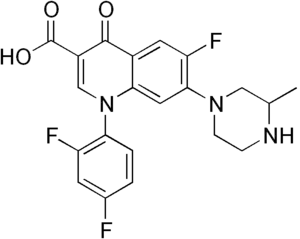 | InChI | InChI=InChI=1S/C21H18F3N3O3/c1-11-9-26(5-4-25-11)19-8-18-13(7-16(19)24)20(28)14(21(29)30)10-27(18)17-3-2-12(22)6-15(17)23/h2-3,6-8,10-11,25H,4-5,9H2,1H3,(H,29,30)[3] |