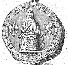 ![]() Teodora Angelina (arborele genealogic al familiei de Babenberg, Mănăstirea Klosterneueburg, sec. al XV-lea) | |