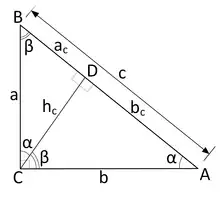 Fie CD AB , D AB , Proiecția catetei CA pe AB este AD , Iar Proiecția catetei CB pe AB este BD. (vezi figura alăturată)