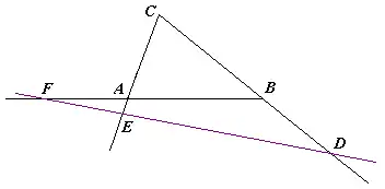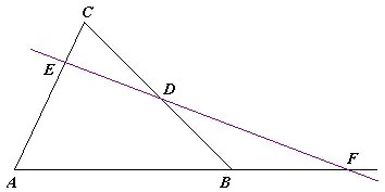 Dacă D aparține lui BC, E aparține lui CA, F aparține lui AB și dacă D, E, F sunt situate două pe laturi și unul pe prelungirea laturii sau toate trei pe prelungirile laturilor și dacă