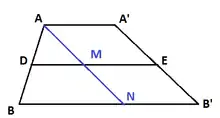 În trapezul AA'BB' se duce prin A o paralelă la A'B' , care taie DE și BB' în M, respectiv N.