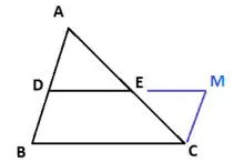 - În acest caz, se prelungește DE până întâlnește în M paralela dusă prin C la AB. Așadar DM || BC și MC || DB, deci DMCB este un paralelogram iar DB = MC.