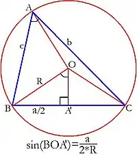 Pe de altă parte, triunghiul este triunghi isoscel cu vârful în O, deci înălțimea OA' este și mediană și bisectoare. Rezultă că