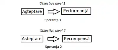 Victor Vroom, în lucrarea sa Work and Motivation, Leadership and Decision Making, este primul care a enunțat această teorie în explicarea motivației în mediul de muncă privind conducerea și luarea deciziilor.