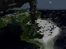 Desen ipotetic al erupției Toba, la aproximativ 42 km deasupra nordului Sumatrei.