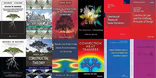 Design în natură. Cum guvernează legea constructală evoluția în biologie, fizică, tehnologie și organizare socială – Adrian Bejan, J. Peder Zane, Editura AGIR, București, 2013, ISBN 978-973-720-476-9- Constructal Law and the Unifying Principle of Design – Luiz A.O. Rocha, Sylvie Lorente, Adrian Bejan, Editura Springer, 2013, ISBN 978-1461450481, ISBN 1461450489