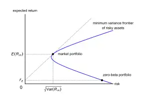 În cazul portofoliilor compuse doar din active cu risc, frontiera Markowitz sau frontiera portofoliilor eficiente este linia Numai cu active cu risc și fără, devine numai cu împrumuturi, devine Cu posibilitățile de a investi în active fără risc și de a împrumuta bani pentru a investi mai mult, frontiera portofoliilor eficiente devine linia [6]