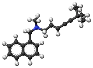 Terbinafina este un antifungic derivat de alilamină, fiind utilizat în tratamentul unor micoze ale pielii.[10][11] Mecanismul de acțiune este prin inhibarea sintezei de ergosterol. Căile de administrare disponibile sunt: topică și orală.[11][12]