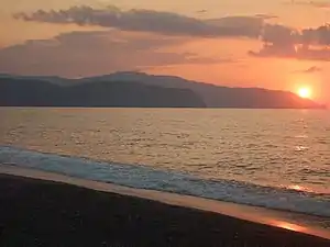 Plaja Terme Vigliatore la apus de soare pe promontoriul de la Tindari