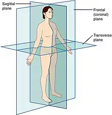 Anatomia este adesea descrisă în planuri, referindu-ne la secțiuni bidimensionale ale corpului. O secțiune este o suprafață bidimensională a unei structuri tridimensionale care a fost tăiată. Un plan este o suprafață imaginară bidimensională care trece prin corp. La anatomie și medicină se face referire la trei planuri: [1] :4