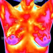 Termografia (din greaca thermos = cald, de la therme = căldură + graphein = a scrie) este o metodă de măsurare și înregistrare a căldurii (radiațiilor infraroșii) produse de diferite părți ale organismului, la nivelul pielii, prin folosirea unui film fotografic sensibil la radiații infraroșii sau o sondă detectoare. Imaginea obținută se numește termogramă, care este o hartă de distribuție a temperaturii la nivelul pielii. Radiațiile infraroșii formate de organism variază în funcție de fluxul sanguin local din vase; în consecință, zonele cu circulație sanguină săracă produc căldură mai puțină. Pe de altă parte, o tumoare cu o vascularizație abundentă și un flux sanguin crescut poate produce pe termogramă zone calde. Termografia este utilizată mai ales în diagnosticul tumorilor de sân, sub denumirea de mamotermografie. În prezent sunt folosite tehnici mai sensibile pentru depistarea tumorilor de sân ca mamografia (radiografia glandei mamare) sau ecografia mamară. [1] [2]