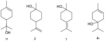 Terpineol: alfa-, beta-, gama- și 4-terpineol