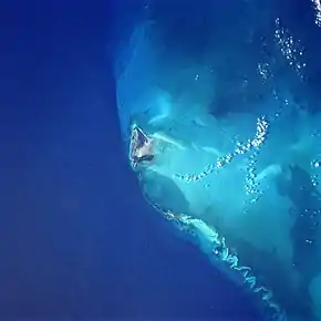 În august 1968, în timpul unui zbor deasupra Insulei Andros (coasta de est a Statelor Unite) piloții Robert Brush și Trig Adams au zărit și fotografiat o construcție submarină, care a apărut prima oară în The Miami News (23 august 1968). O echipă condusă de Dimitri Rebikoff (un pionier al filmărilor subacvatice) și Manson Valentine (arheolog american, Miami) au descoperit un edificiu precolumbian extrem de vechi. Rebikoff declara că sub primul pat de pietre există cel puțin încă unul... toate legate între ele cu un strat de ciment de peste 6 cm. grosime; fațada exterioară a zidului este perfect dreaptă, pietrele fiind aliniate și șlefuite... Altă descoperire remarcabilă în zonă o reprezintă așa-zisele Ziduri din Bimini (sau Drumul din Bikini) descoperite în 1968.[10] Ulterior au fost descoperite în zona Bahamas alte zeci de șosele subacvatice (unele paralele sau curbe) din dale dreptunghiulare și coloane din piatră sau uneori din marmură.[11] Explorări aeriene, care au început în 1968, au demonstrat existența a numeroase ansambluri de clădiri, șosele și fortificații scufundate în zona Bahamas (Bahamas Banks, Andros, Bimini, etc.), unele din clădiri fiind piramide, domuri gigantice, porturi sau platforme pe care se aflau cu mii de ani în urmă temple și bastioane. Lângă Bimini s-a găsit în apă un trunchi de piramidă cu dimensiunile bazei mici de 54 X 42 m, jumătatea inferioară fiind îngropată în nisip, în apropiere aflându-se un drum lat de 4 m și câteva coloane răsturnate. J. Manson Valentine afirmă că aceste structuri gigantice, [...]la fel ca și desenele de la Nazca sau construcțiile de la Glastonbury Circle (30 m circumferința)[...] pot reprezenta un centru de ceremonie sau ceva asemănător și [la fel ca celelalte structuri amintite] [...] nu au niciun punct virtual de referință cu tehnologia noastră modernă, scopurile acestor creații majestuoase fiind absolut de neînțeles pentru noi.[10] Comandantul Jacques-Yves Cousteau și arheologul John A. Glifford (Univesitatea din Miami) au studiat separat zona și au ajuns la aceleași concluzii trase de Valentine și Rebikoff: nu sunt formațiuni naturale, complexul de la Bahama Banks fiind opera unor populații din America. În niciun caz spaniolii din sec. XVI-XVII deoarece nu există documente scrise și ar fi trebuit să muncească (cu ce scop?) sub apă. Civilizația precolumbiană locală olmecă care a realizat monumente impresionante are un stil diferit de cel al complexului scufundat de la Bahamas care se aseamănă mai mult cu cetățile Greciei miceniene sau a celor preincașe din Peru și Bolivia. Vârsta acestor construcții nu se știe, dar prin datarea cu metoda C14 a rădăcinilor de mangrove (amestec vegetal tropical care crește pe țărmurile marine mlăștinoase) fosilizate printre pietre au rezultat cca. 12000 de ani. Conform geologiei submarine în zona Bahama Banks nivelul apei era cu 6 m mai mic în anii 6000 î.Hr., dar cum piramidele și terasele au minim 12 000 de ani (metoda C14), nivelul mării era cu 14–14 m mai scăzut în anii 12-1000 î.Hr.. topirea ghețarilor din ultima glaciațiune (în anii 25000 î.Hr.) a inundat zone mari din Florida și Bahamas (pământuri unite odinioară în mase continentale conform geologilor). Prin mijlocul insulelor Bahamas există azi un canion foarte adânc numit The Tongue of Ocean (Limba Oceanului), care în timpul realizării construcțiilor, cu mii de ani în urmă, era probabil o strâmtoare sau un golf navigabil.