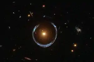 Cu toate acestea, precizia inițială a fost slabă. Unii,[24] au afirmat că rezultatele au fost afectate de eroarea sistematică și, posibil de bias de confirmare, deși reanaliza modernă a setului de date[25] sugerează că analiza lui Eddington a fost corectă.[26][27] Măsurarea a fost repetată de o echipă a Observatorului Lick la eclipsa din 1922, cu rezultate care au fost în acord cu rezultatele din 1919[27] și a fost repetată de mai multe ori, în special în 1953 de către astronomii Observatorului Yerkes[28] și în 1973 de o echipă de la Universitatea din Texas.[29] În aceste măsurători a rămas o incertitudine considerabilă timp de aproape cincizeci de ani, până când au început observațiile la frecvențele radio.[30] În timp ce Soarele este prea aproape pentru ca un inel Einstein să se întindă în afara coronei sale, un astfel de inel format prin devierea luminii de la galaxii îndepărtate a fost observat pentru o stea din apropiere.[31]