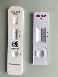 Testele rapide de antigen COVID-19, denumite frecvent și teste de flux lateral COVID-19, sunt teste rapide de antigen utilizate pentru detectarea infecției SARS-COV-2 (COVID-19). Acestea sunt rapid de implementat, cu o pregătire minimă, au oferit avantaje semnificative în ceea ce privește costurile, costând o fracțiune din alte forme de testare COVID-19 și oferă utilizatorilor un rezultat în 5-30 de minute. Cu toate acestea, ele au o rată ridicată de rezultate fals negative. Testele rapide de antigen sunt utilizate în mai multe țări ca parte a testărilor în masă sau a abordărilor de screening la nivelul întregii populații.[1][2][3] Se consideră că acestea sunt valoroase pentru identificarea persoanelor asimptomatice care ar putea răspândi virusul la alte persoane, care altfel nu ar ști că sunt infectate.[4] Acest lucru diferă de alte forme de testare a COVID-19, cum ar fi PCR, care sunt în general considerate a fi un test util pentru persoanele simptomatice, deoarece au o sensibilitate mai mare și pot identifica mai precis cazurile.
