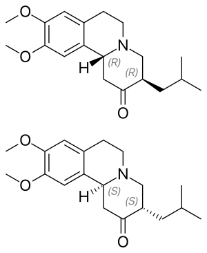 - 9,10-dimethoxy-3-isobutyl-1,3,4,6,7,11b-hexahydro-2H-pyrido[2,1-a]isoquinolin-2-one (în engleză), ChEBI, accesat în