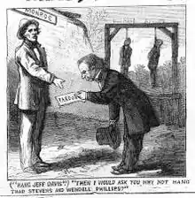 După ce Congresul a dezbătut modul în care SUA va fi organizată după război, statutul sclavilor eliberați și al foștilor confederați rămăsese nedeterminat.[99][100] Stevens a declarat că era nevoie de o „reorganizare radicală a instituțiilor, obiceiurilor și manierelor Sudului”.[101] Stevens, Sumner și alți radicali susțineau că statele din Sud ar trebui să fie tratate ca provincii cucerite, fără drepturi constituționale. Lincoln, dimpotrivă, spunea că numai persoane fizice, nu statele, fuseseră rebele.[102] În iulie 1864, Stevens a insistat ca Lincoln să promulge Legea Wade–Davis(d), care îi obliga pe cel puțin jumătate din alegătorii dinainte de război să semneze un jurământ de loialitate ca precondiție ca un stat să-și redobândească statutul autonom în cadrul federației. Lincoln, care a susținut mai indulgentul plan al celor zece procente(d), a amânat indefinit promulgarea(d).[103]