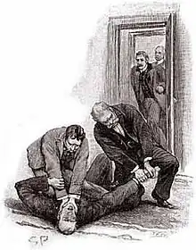 Toată lumea observă apoi că Holmes a ieșit din cameră. Câteva momente mai târziu, se aud strigăte de "ajutor" și "crimă". Watson recunoaște vocea prietenului său. El și cu Forrester intră în camera lui Alec unde îl găsesc pe tânăr încercând cu amândouă mâinile să-l strângă de gât pe Holmes și pe tatăl său răsucindu-i detectivului încheietura mâinii. Cei doi Cunningham sunt repede imobilizați, iar Holmes îi spune lui Forrester să-i aresteze pe cei doi pentru uciderea lui William Kirwan. La început, Forrester crede că detectivul trebuie să fie nebun, dar Holmes îi atrage atenția asupra privirii vinovate de pe fețele lor. După ce un revolver este scos din mâna lui Alec, cei doi sunt arestați. Arma este cea folosită la uciderea lui Kirwan, fiind reținută apoi de poliție.