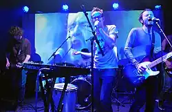 ![]() The Amsterdams la lansarea oficială Electromagnetica, în Kulturhaus, București. Stânga: Ovidiu Bejan. Dreapta: Andrei Hațegan | |