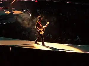 The Edge, pe scenă la Anaheim în 2005.