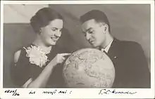 ![]() Geograful român Tiberiu Morariu și soția sa în perioada sărbătorilor de iarnă 1935-1936 | |