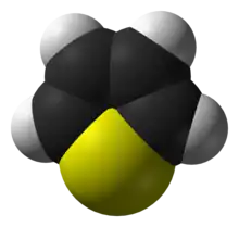 Tiofenul, de asemenea cunoscut și sub denumirea de tiofuran, este un compus heterociclic cu formula chimică C4H4S. Este format dintr-un nucleu aromatic compus din cinci atomi, patru de carbon și unul de sulf, iar pe lângă alți patru atomi de hidrogen. Tiofenul stă la baza compușilor benzotiofen și dibenzotiofen, care conțin inelul de tiofen combinat cu unul, respectiv două nuclee benzenice. Printre compușii analogi tiofenului se numără furanul (C4H4O) și pirolul (C4H4N).