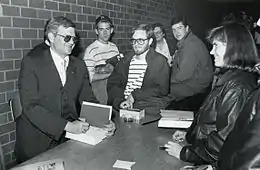 ![]() Tom Clancy (stânga) la librǎria Burns (Boston) | |