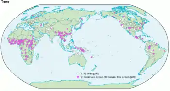 Limbi tonale se găsesc mai ales în Asia de Sud-Est: limbile bunu sau punu, chineza (mai ales cea cantoneză) sau vietnameza. Multe limbi africane, de exemplu cea a etniei khoikhoi, sunt de asemenea tonale[6][7][9]. Sistemul tonurilor nu este însă la fel de complex în toate limbile tonale.