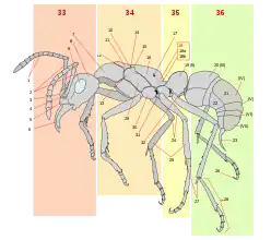 Toracele insectelor este divizat în 3 segmente: protorace, mezotorace, și metatorace. De ultimele două sunt atașate aripile, de aceea ele se numesc împreună pterotorace. La unele himenoptere primul segment abdominal este îmbinat cu metatoracele, unde formează o structură cunoscută sub numele de propodeum.