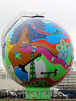 În iulie 2009 toyistii realizează primul proiect monumental: decorarea unui container de gaz de formă sferică, cu o înălțime de 22 de metri și o anvergură de 1250 de metri pătrați situat în orașul Emmen din Olanda. Toyiștii au transformat această structură industrială într-o operă de artă intitulată De Stip-Punctul (olandeză). Transformarea a durat 9 luni, însemnând peste 6000 de ore de lucru. Opera spune povestea energiei în relația cu noi și mediul înconjurător (Living with Energy).