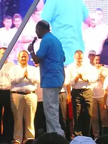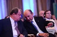 Traian Băsescu (n. , Basarabi, Constanța, România) este un politician român, fost președinte al României între 2004 și 2014. Anterior, din iunie 2000 până în decembrie 2004, a fost primar general al municipiului București, ales din partea PD. Traian Băsescu a fost în regimul comunist colaborator cu Securitatea ca Poliție politică sub numele de cod Petrov, fapt dovedit la Înalta Curte de Justiție a României, care a admis cererea CNSAS de constatare a calității de colaborator pentru fostul președinte al României.[4]
