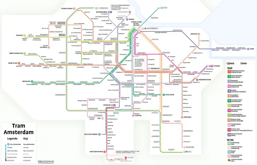 În anul 2016 existau 14 trasee de tramvai.[5] În 2018, întreaga rețea de transport din Amsterdam va fi reorganizată și se va introduce o nouă numerotare.[6]