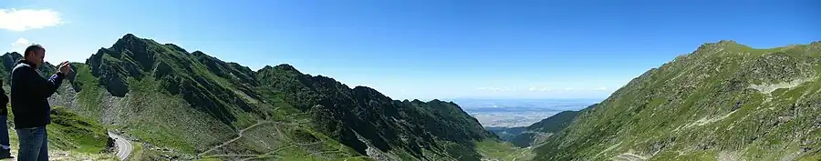 Transfăgărășanul, spre nord (în fundal, Depresiunea Făgăraș)