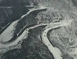 Până la construirea barajului și lacului de acumulare Vidraru, în 1965, de-a lungul căruia DN7C se desfășoară pe aproape 20 km, a existat un drum de pământ și o linie de mocăniță ce lega comuna Căpățâneni de vechiul sat Cumpăna (astăzi acoperit de ape, în apropierea căruia s-a construit actuala cabană Cumpăna).[3]