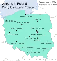 Companiile poloneze de transport aerian sunt: PLL LOT, Centralwings, EuroLOT, Prima Charter, White Eagle Aviation și Direct Fly (acum cu zborurile anulate). Pe aeroporturile poloneze operează și alte companii aeriene precum: Air France, British Airways, Lufthansa, Ryanair sau TAROM. Cele mai importante aeroporturi sunt: Warszawa Okęcie, Bydgoszcz, Gdańsk, Katowice Pyrzowice, Kraków Balice, Poznań Ławica, Szczecin Goleniów și Wrocław Strachowice. Rețeaua legăturilor aeriene în Polonia nu este dezvoltată și majoritatea zborurilor sunt făcute prin aeroportul Okęcie. Aproximativ 20 de aeroporturi, care acum sunt nefolosite, pot fi modernizate spre a deschide transportul aerian.