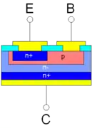 Tranzistorul bipolar (în engleză: bipolar junction transistor, BJT) este un dispozitiv semiconductor cu două joncțiuni în succesiune npn sau pnp. Cele trei zone se numesc emitor (E), bază (B), colector (C).[1]