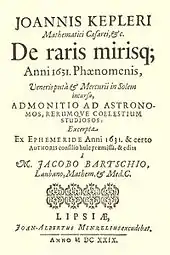 În 1619, Kepler și-a publicat Tabelele rudolfine. Zece ani mai târziu, el a publicat extrase în De raris mirisque Anni 1631 care includ o admonitio ad astronomos (« avertisment astronomilor ») à propos de tranzitul lui Mercur din 1631 și tranziturile lui Venus din 1631 și 1761. Tranzitul lui Mercur a fost observat, cum se prevăzuse, de către Jean-Baptiste Cysat la Innsbruck, Johann Ruderauf la Rouffach[3] și Pierre Gassendi la Paris, justificând lucrările pregătitoare ale lui Kepler.[1] Totuși, observațiile lor repun în discuție teoriile asupre Sistemului Solar, Mercur fiind observat limpede mai mic decât se aștepta[4], sugerând că observarea unui tranzit al lui Venus ar fi mai util pentru știință.[5]