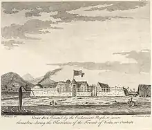 Observarea tranzitului a fost unul dintre motivele primei călătorii a lui James Cook.[5] Echipajul a debarcat în Tahiti, pe atunci o posesie franceză, și a construit un mic observator în nordul insulei, într-un loc numit din Pointe Vénus. Astronomul Charles Green a realizat observațiile.